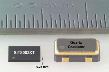 圖3 超薄MEMS振蕩器與一般石英振蕩器的厚度比較示意圖