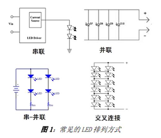 另外,應(yīng)用中通常會使用多顆LED,這就涉及到多顆LED 的排列方式問題。各種排列方式中, 首選驅(qū)動串聯(lián)的單串LED, 因為這種方式不論正向電壓如何變化、 輸出電壓(Vout)如何“漂移”,均提供極佳的電流匹配性能。
