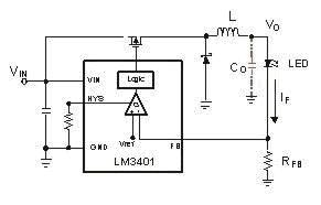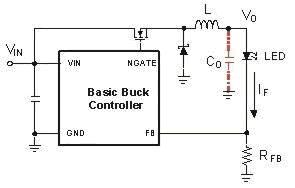 圖2c:基本的固定頻率的降壓LED驅(qū)動(dòng)。