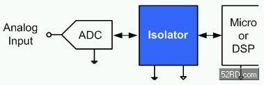 圖2:模擬數(shù)字轉(zhuǎn)換器與處理器之間的隔離控制范例