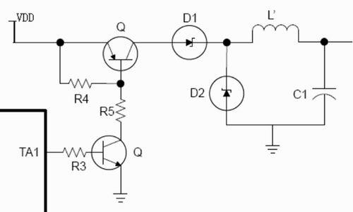 充電控制電路設(shè)計的核心是利用PWM控制MOSFET管的導(dǎo)通,MSP430F20X3系列時鐘頻率最高為16MHz。如果取PWM分辨率為9位,MOSFET管工作頻率為16000000/512=32768 (Hz),在音頻范圍外,不會產(chǎn)生噪聲。考慮到脈沖寬度與電源的輸出并非線性關(guān)系,電源輸出最多能控制到1/256,完全滿足設(shè)計精度的需要。原理圖如圖2。