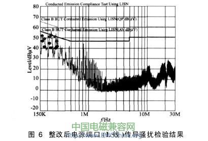 整改后的測試結(jié)果見圖6:整改后電源端口(L-線)傳導騷擾。