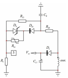 在眾多設(shè)計中,必須保護適配器免受熱失控(如適配器殼體內(nèi)溫度超過特定值)影響。我們可以通過跟齊納二極管(D10)串聯(lián)一個負溫度系數(shù)(NTC)電阻(R14)來應(yīng)用簡單的 OTP(如圖 3 所示)。當(dāng)溫度升高時,NTC電阻開始下降,并升高引腳 3 的電壓。當(dāng)引腳 3 的電壓電平達到 3 V 時,器件就簡單地閂鎖,并要求復(fù)位,然后重啟。