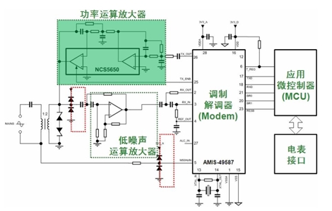 例如,安森美半導(dǎo)體推出了支持 2.4 kb的更高半雙工可調(diào)節(jié)通信速率、符合IEC61334-5-1標(biāo)的AMIS-49587高集成度低功率PLC調(diào)制解調(diào)器方案,以及能驅(qū)動高達 2 A電流的高能效的A/B類低失真線路驅(qū)動器——NCS5650,能夠很好地配合智能電表PLC調(diào)制解調(diào)器及線路驅(qū)動應(yīng)用。