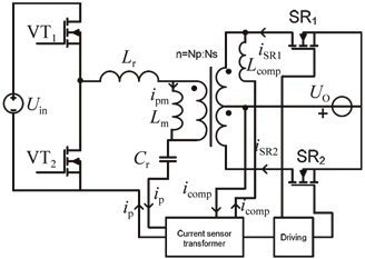 由于LLC諧振變流器的勵(lì)磁電流較大,導(dǎo)致一次側(cè)電流與二次側(cè)電流之間存在相位差,因此,可以采用補(bǔ)償電感L comp對(duì)相位進(jìn)行補(bǔ)償,而有文獻(xiàn)則采用輔助變壓器對(duì)一次側(cè)電流進(jìn)行采樣。這兩種驅(qū)動(dòng)方案都可以解決相位差問(wèn)題,而且沒(méi)有增加大型的磁性元件,有利于提高效率和功率密度。