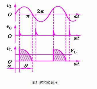 晶閘管移相式軟起動器是改變正弦交流電壓的波形,使之變?yōu)榉钦颐}沖式交流電,通過調(diào)節(jié)其占空比,如圖2所示。