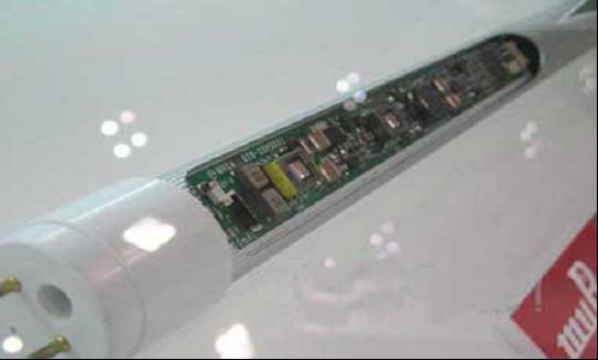 日本村田制作所展示過(guò)無(wú)需電解電容器的LED照明用電源,該驅(qū)動(dòng)電源是面向Clear Sodick開(kāi)發(fā)的電源模塊,其輸入輸出電容器采用了該公司的多層陶瓷電容(MLCC),可內(nèi)置于直管型LED照明器具的管內(nèi)。與采用鋁電解電容器時(shí)相比,除了可縮小產(chǎn)品尺寸外,還能延長(zhǎng)產(chǎn)品壽命。為了獲得恒定電流,采用了DSP微控制器,開(kāi)關(guān)頻率約為200kHz。輸出電容器采用了兩個(gè)約5μF的MLCC。輸入電壓支持AC100V以及200V兩種。