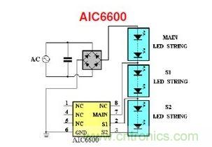 它首先要測量輸入電壓,等到輸入電壓達(dá)到一定值以后,開始接通第一串恒流于比較低值的LED;到達(dá)更高一些的電壓以后就開始在第一串后面再接上第二串LED并恒流于更高的電流;最后等到電壓更高以后,再接通第三串LED并恒流于更高值的電流。所以它的內(nèi)部結(jié)構(gòu)是很復(fù)雜的。