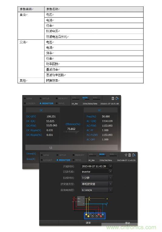 E6500電能質(zhì)量和能效分析儀可以快速測(cè)量逆變器轉(zhuǎn)換效率以及功率。目前支持單向逆變器與三相逆變器測(cè)量,主要測(cè)試功能如下: