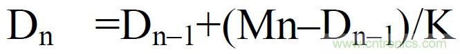 選擇指數(shù)平均法,用戶可設(shè)定衰減常數(shù)對(duì)電壓或電流有效值、有功功率的瞬時(shí)值(采樣數(shù)據(jù))進(jìn)行指數(shù)平均,去除被測(cè)量的高頻成分。其中衰減常數(shù)可以手動(dòng)設(shè)置,衰減常數(shù)設(shè)置值越大測(cè)量值越穩(wěn)定,對(duì)輸入變化的響應(yīng)速度也就越慢,也就是說(shuō)測(cè)量延遲會(huì)相應(yīng)變長(zhǎng)。該平均法常用于信號(hào)中存在高頻信號(hào),通過(guò)設(shè)定衰減常數(shù)減小高頻信號(hào)對(duì)數(shù)據(jù)的干擾,公式如下: