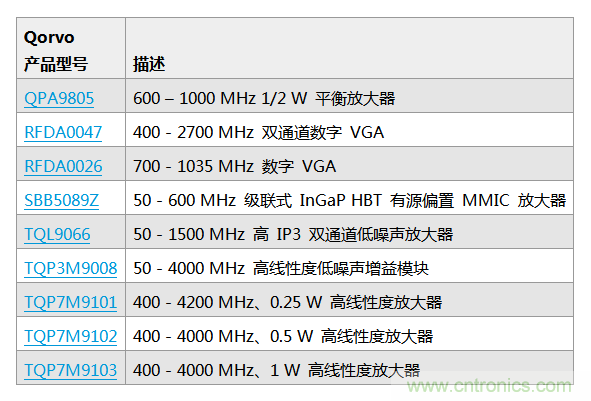 Qorvo 的小信號產品系列線性度高,功耗低,噪音小,尺寸小,極其便于集成。這一系列包括發(fā)送線性放大器、增益模塊和可變增益放大器,以及衰減器、開關、濾波器、雙工器和低噪聲放大器。少數此類解決方案包含: