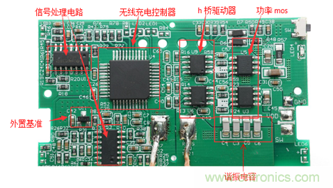 這種SoC方案下,PCB上只有一顆大芯片,和兩個MOS管,相當(dāng)簡潔。SOC內(nèi)部集成了無線充電驅(qū)動,H橋驅(qū)動器,運放,內(nèi)置溫度保護(hù)功能等,一顆芯片實現(xiàn)所有功能,可有效控制成本和精簡生產(chǎn)流程。