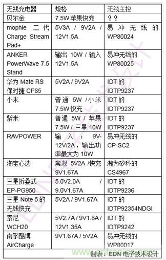 EDN電子技術(shù)設計的編輯對比了11款流行的無線充電器,整理出他們的主控芯片: