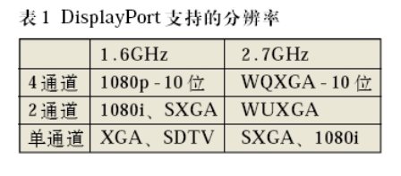 DisplayPort是一個(gè)高帶寬、雙向顯示互連,可以實(shí)現(xiàn)內(nèi)置和外置顯示連接的通用新一代接口標(biāo)準(zhǔn)。憑借可擴(kuò)展SerDes技術(shù)及改變通道數(shù)和速度,顯示系統(tǒng)可采用DisplayPort接口標(biāo)準(zhǔn)來(lái)支持各種分辨率,使其成為數(shù)字電視的理想選擇。表1顯示了一些由不同速度和通道數(shù)支持的DisplayPort的分辨率實(shí)例。