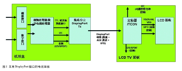 為采用DisplayPort 接口的一個(gè)電視面板的框圖。