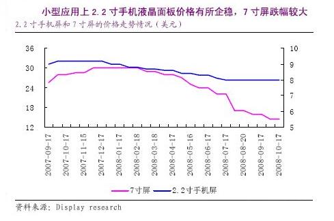 圖3:小型應(yīng)用上2.2寸手機(jī)液晶面板價格有所企穩(wěn),7寸屏跌幅較大。
