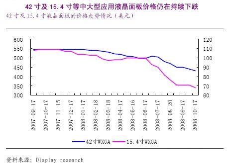 圖4:42寸和15.4寸等中大型應(yīng)用液晶面板價格仍在持續(xù)下跌。
