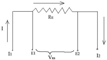 當電流檢測電阻值已小到幾毫歐時,其引線的電阻造成的誤差則不能忽略,為此開發(fā)出四引線結構,如圖4所示。接近電阻根部的兩引線為測量VRS端,另兩根引線為電流的通路。在電阻根部測量RS上的電壓(消除了引線電阻的測量誤差)是精密測量方法,也稱為凱爾文(Kelvin)測量法。