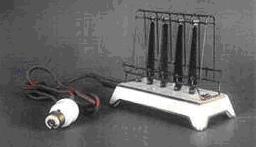 愛迪生發(fā)明的白熾燈把世界帶入了電氣時代,但墻壁插座并非與燈泡同時出現(xiàn)??紤]成本因素,當電扇、電烤面包機、吸塵器、電吹風出現(xiàn)時,它們仍然沿襲了燈泡的供電方式——接到燈頭座上(圖1.1)。盡管HarveyHubbell在1904年發(fā)明了更方便的2芯插頭/座(圖1.2),但采用燈頭取電的方式一直沿用到20世紀20年代。