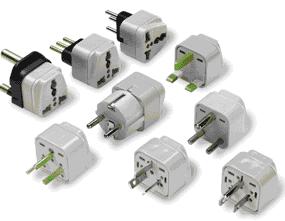 可以預見,在相當長的時間內,交流電插頭/座還會維持現(xiàn)狀。在不能統(tǒng)一標準而又要解決互換使用的情況下,轉接適配器(圖2.3)成為目前行之有效的辦法。實現(xiàn)將某種插座轉換成能與多種插頭匹配的樣式(圖2.4)。適配器自身插頭改進后,適用范圍可更廣。