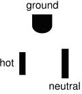 北美ANSI/NEMA標準插座的安裝方向沒有限制(圖3.4a),插座的零/火線通過插孔尺寸識別——零線插孔較火線更寬(圖3.4b)。相應地,插頭上零線插片也較寬(圖3.4c)。這樣,即使插頭為兩芯也能防止插反。相關標準還特別規(guī)定,20A插頭的零線方向與火線方向垂直(圖3.4d),與之匹配的插座零線插孔為T形(圖3.4e),可向下兼容兩種不同插頭。