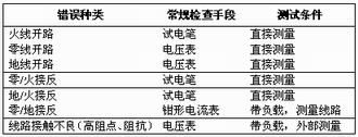 無論哪種插座,正確接線只有1種,其它組合都是錯誤的。為確保設備和人身安全,插座在投入使用之前,必須依照規(guī)范進行檢查。準確辨別各種接線錯誤(3芯插座的接線錯誤歸納于表4.1)需要必要的工具和方法。