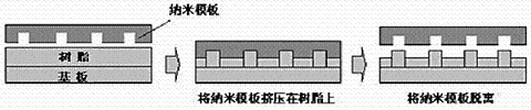 在納米印刷技術(shù)中,將金屬凸模擠壓樹脂薄膜上,便會(huì)形成凹部。但要形成平面比較大的細(xì)長結(jié)構(gòu),必須有深度雕刻的納米模板,因?yàn)槟0鍙臉渲∧っ撾x時(shí),必然會(huì)拉伸樹脂,所以能形成高出納米模板凹部的柱狀結(jié)構(gòu)體,這種方法就稱為高寬比納米印刷技術(shù)。