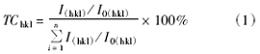 在XRD測(cè)量中,以晶面(hkl)的織構(gòu)系數(shù)TC(texturecoefficient)來表征晶面擇優(yōu)程度。