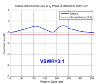 失配傳感器把VSWR(反射回天線的功率幅度)與發(fā)射功率進行比較并調(diào)節(jié)阻抗調(diào)諧電路。調(diào)諧算法使可調(diào)元件在各種使用情況下持續(xù)跟蹤環(huán)境條件,并把阻抗調(diào)到最優(yōu)值(見圖1)。