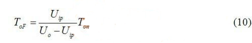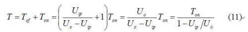 可見,輸出電壓Uo一定大于輸入電壓Uip,如果輸出電壓接近輸入電壓,在輸入電壓峰值附近截止時間遠(yuǎn)大于導(dǎo)通時間,開關(guān)周期很長,即頻率很低。