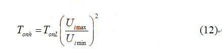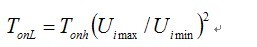 如果首先決定最低輸入電壓(Uimin)對應(yīng)的導(dǎo)通時間為TonL,最高輸入電壓(Uimax)的導(dǎo)通時間為
