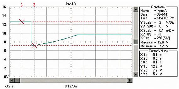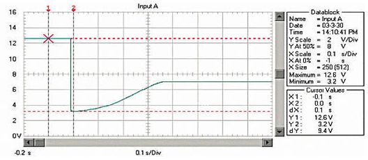 圖1 啟動(dòng)過(guò)程的蓄電池電壓波形