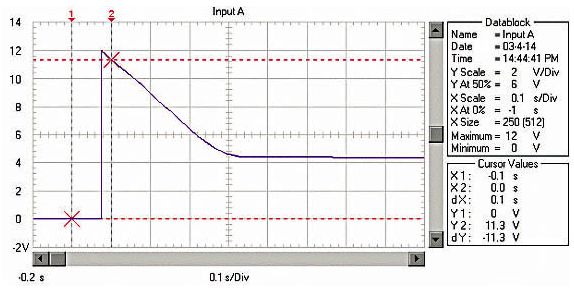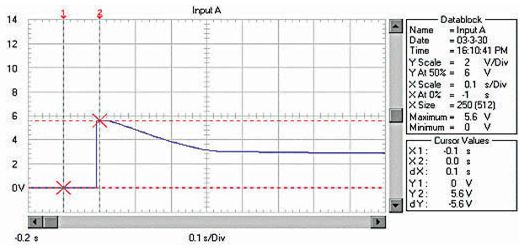由于RM、RB、RL均非常低,啟動(dòng)電流非 常大。例如用12V、45Ah的蓄電池啟動(dòng)安裝1.9升柴油機(jī)的汽車(chē),蓄電池的電壓在啟動(dòng)瞬間由12.6V降到約3.6V!啟動(dòng)過(guò)程的蓄電池電壓波形如圖 1;啟動(dòng)瞬時(shí)的電流達(dá)550A,約為蓄電池的12C的放電率!啟動(dòng)過(guò)程的蓄電池電流波形如圖2,(電流傳感器的電流/電壓變換比率:100A/V)。盡管 車(chē)用蓄電池是啟動(dòng)專(zhuān)用蓄電池,可以高倍率放電,但在圖1中可以看出,10倍以上的高倍率放電時(shí)的蓄電池性能變得很差,而且,如此高倍率放電對(duì)蓄電池的損傷 也是非常明顯的。啟動(dòng)過(guò)程的電壓劇烈變化也是極強(qiáng)的電磁干擾,可以造成電氣設(shè)備的“掉電”,迫使電氣設(shè)備在發(fā)電機(jī)啟動(dòng)過(guò)程結(jié)束后重新上電,計(jì)算機(jī)在這個(gè)過(guò)程中非常容易死機(jī)。因此,無(wú)論從改善汽車(chē)電氣設(shè)備的電磁環(huán)境還是改善汽車(chē)的啟動(dòng)性能和蓄電池的性能、延長(zhǎng)使用壽命來(lái)考慮,改善汽車(chē)電源在啟動(dòng)過(guò)程的性能是必要的。