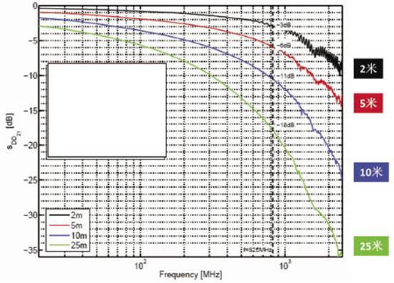 圖2 HDMI線纜中輸入信號(hào)的衰減隨信號(hào)頻率的變化