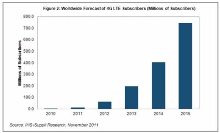 根據(jù)IHS iSuppli公司的智能手機與融合設備市場研究報告顯示,在移動網絡運營商的大力支持下,下一代4G無線標準——長期演進(LTE)在今年以及未來幾年將取得驚人的增長,增長率將高達數(shù)倍甚至數(shù)十倍,到2015年其用戶數(shù)量將達到相當可觀的水平。