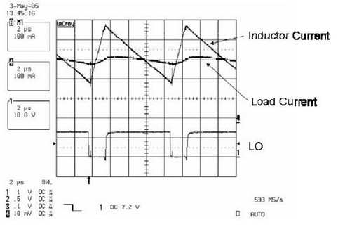 下圖, 說明了電感減小時,在輸出電壓的變化范圍內(nèi),負載電流的波動明顯增大。