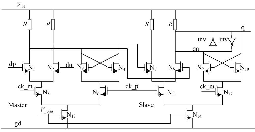 圖2 CML 鎖存器構成的主從式觸發(fā)器電路