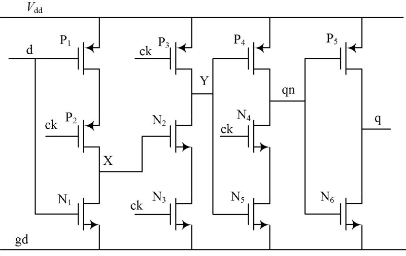 圖3 TSPC 電路構成的觸發(fā)器[page]