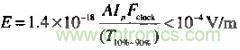 要想精確計(jì)算一個(gè)數(shù)字產(chǎn)品的輻射強(qiáng)度等級(jí)是件不現(xiàn)實(shí)的事情,因?yàn)橛刑嗟囊蛩貢?huì)影響結(jié)果。下式表示了一個(gè)簡(jiǎn)單的約束條件:開(kāi)放的測(cè)量試驗(yàn)場(chǎng)合,30MHZ以上,滿足FCC和VDE輻射限制的環(huán)路面積、峰值電流和上升時(shí)間。