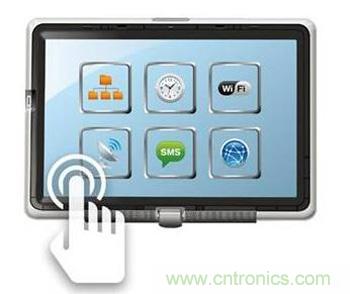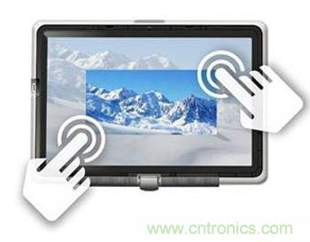 觸摸屏的功能發(fā)展由簡及繁,最初的產品只支持最簡單的操[LU4]控,就是一個手指觸摸屏幕上的一點來實現(xiàn)操控。比如我們每天在附件超市的POS終端機,或者在機場的check-in終端上進行的操作。以前,我們只能通過屏幕周邊的機械按鈕進行操控,單點觸摸屏在此基礎上實現(xiàn)了用戶界面方面的一大進步。當然,機械和新型電容式觸摸感應按鈕在我們的家庭、辦公室及其他地方無所不在:手機、固定電話、遙控器、電視、電腦及其各種外設、游戲機、電冰箱、微波爐、烤箱,以及無線電和空調等車內電子控制設備等等。現(xiàn)在,如下列圖1所示的單點觸摸屏在顯示屏上直接集成了用戶控制界面,因此再也不需要傳統(tǒng)的機械按鈕了。