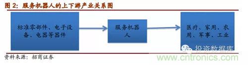 服務機器人行業(yè)生產(chǎn)所用的主要零部件為自動焊機、電子器件、微處理器、機器人用伺服電機、高精度減速器、機加件、氣動元器件、傳感器、電池、單板機等,歸屬于標準零部件、電子設備以及電子元器件等。服務機器人產(chǎn)業(yè)的下游則主要是醫(yī)療、家用、農(nóng)用、軍事等行業(yè)和領域。