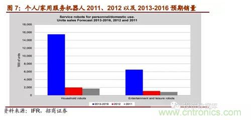 (一)服務機器人是機器人家族中的一個年輕成員,其定位就是服務。當前世界服務機器人市場化程度仍處于起步階段,但受簡單勞動力不足及老齡化等剛性驅(qū)動和科技發(fā)展促進的影響增長很快,根據(jù)marketsandmarkets的報告,2012年全球服務機器人市場規(guī)模為207.3億美元,預計2012-2017年年復合增長率將達到17.4%,到2017年達到461.8億美元,行業(yè)空間巨大,中國作為后來者,增速將更快。