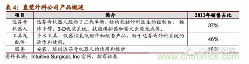 直覺外科公司是全球領先的微創(chuàng)機器人輔助手術機器人公司,2013年營收達22.65億美元,截止2014年第一季度達芬奇機器人累計銷售數(shù)量為3039臺,2014年8月總市值達159.60億美元。