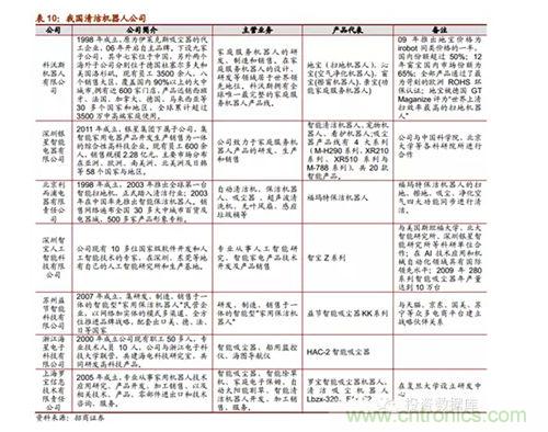 根據(jù)中國品牌網(wǎng)統(tǒng)計公布的2013年十大掃地機器人品牌排行榜,我國國產(chǎn)掃地機器人有6家上榜。目前為止,我國已經(jīng)有一部分表現(xiàn)優(yōu)良的企業(yè)涉足家用清潔機器人的開發(fā)和生產(chǎn),都和國內(nèi)高校研發(fā)機構有所合作,做到研產(chǎn)結(jié)合。當前機器人行業(yè)發(fā)展的宏觀前景良好,市場潛力巨大,目前我國會在未來出現(xiàn)一批在細分行業(yè)技術領先表現(xiàn)良好的潛力企業(yè)。