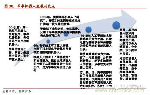 (五)軍事機器人是21世紀各國軍事安全重點戰(zhàn)略:蒂爾集團稱未來10年全球無人機研發(fā)投入和采購需求將達到940億美元。軍用機器人強國包括美德英法意以日韓,這些國家不僅在技術處于研究的先列,其產(chǎn)品已經(jīng)在軍事上有了實際運用;我國與這些強國的技術差距明顯,受政策支持,軍事機器人相關企業(yè)發(fā)展前景明顯良好,可能成為企業(yè)未來強勁的收入保證。
