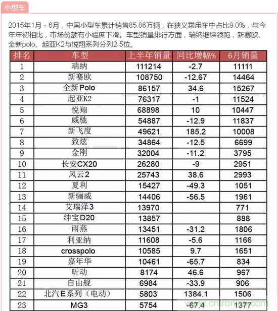 2015年1月-6月,中國乘用車銷量超過千萬輛,達(dá)到1009.56萬輛,同比增長4.80%,比上年同期回落6.38個百分點。其中基本型乘用車(轎車)銷售