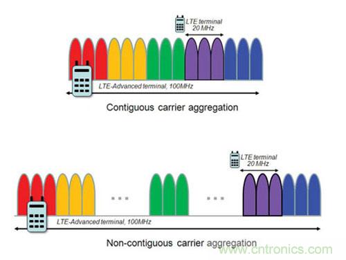 運營商目前處于載波聚合(CA)技術部署初期,這是LTE Advanced標準(3GPP Release 10)的一個特性。借助CA,運營商可以提高數(shù)據(jù)容量和吞吐量,其方式是把最多五個分量載波(每個載波在 1.4-20MHz之間)組合成最高達100MHz的總帶寬。