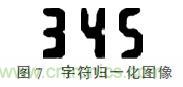 得到字符在圖像中的位置后,即可將字符從圖像中分割出來。由于實際分割過程中每個字符大小不一致,如圖6所示,所以對分割字符進行歸一化處理,使不同字符的大小統(tǒng)一為固定大小,便于后續(xù)字符分割。首先將圖6中字符周圍的空白位置切除,然后采用三次樣條插值的方法,對源圖像附近的4×4個鄰近像素進行三次樣條擬合,最后將目標像素對應(yīng)的三次樣條值作為目標圖像對應(yīng)像素點的值。將字符歸一化以后,所得各個字符如下圖7所示。