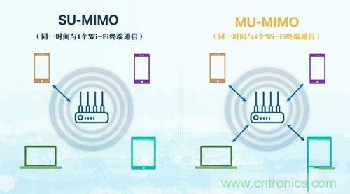 但MIMO(也稱SU-MIMO,即單用戶多輸入多輸出)也有自己的缺陷——會(huì)產(chǎn)生MIMO間隙。簡(jiǎn)單來(lái)說就是目前我們熟悉的無(wú)線路由/AP大都有3-4根天線,但WiFi終端通常只有1-2根天線。而采用MIMO技術(shù)的無(wú)線路由/AP同一時(shí)間只能與1個(gè)WiFi終端建立連接和通訊,因此WiFi終端很難全部占用所有傳輸信道,即無(wú)法占滿無(wú)線路由/AP的全部容量,這種差異就被稱為MIMO間隙。