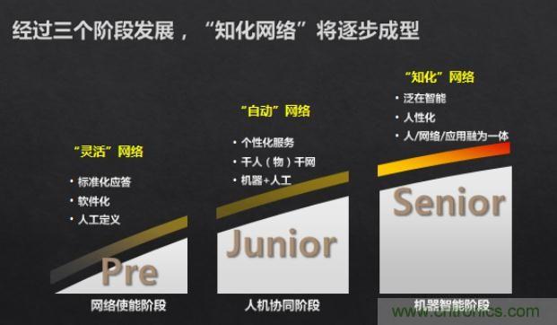 “它”將是一個“知化”網(wǎng)絡,它將逐步進化,從現(xiàn)在這種冰冷的物理連接到主動感知各類連接設備,再到分析了解網(wǎng)絡運行的各種數(shù)據(jù),知曉如何適應外界的變化,最后網(wǎng)絡將有智能思考的能力,形成自身的知識,會進行策略選擇和推演,實現(xiàn)人、網(wǎng)絡和應用的融合一體。 未來這個“知化”的網(wǎng)絡將是集連接、感知、計算和數(shù)據(jù)服務為一體的網(wǎng)絡,將會實現(xiàn)超級安全、自主優(yōu)化、進化更新等三大能力。